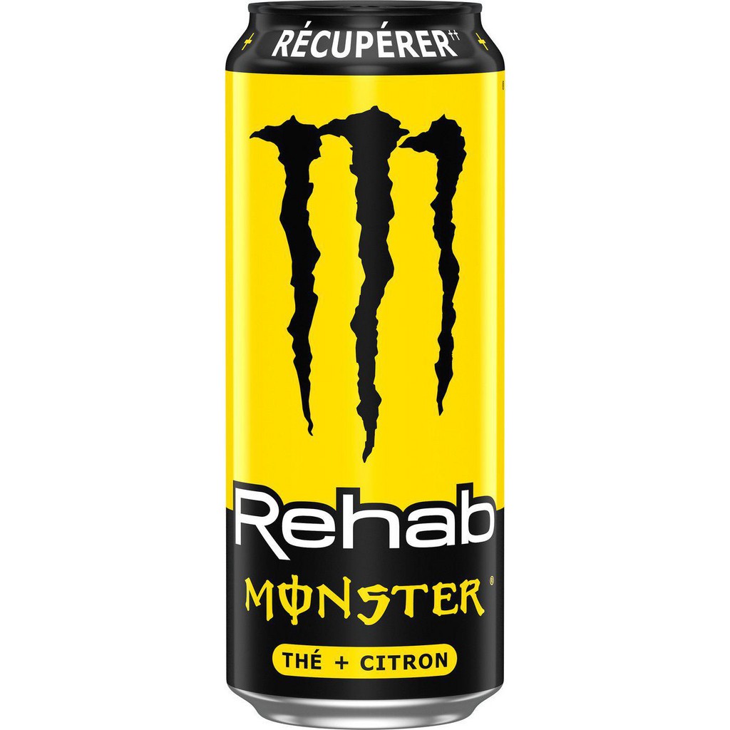 Boissons énergisantes de la marque MONSTER. MONSTER Boisson Energisante Énergisante Rehab Thé Citron 50cL. EAN 5056784907818.