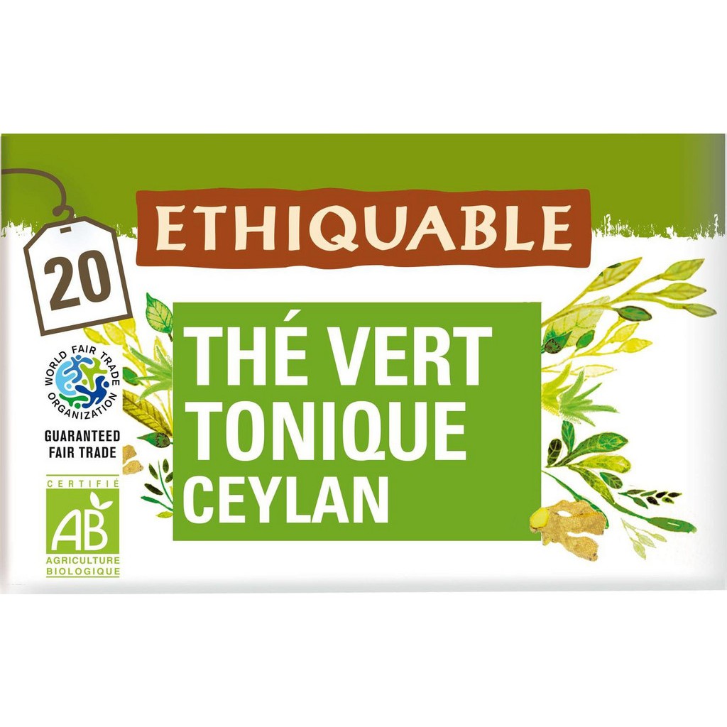 ETHIQUABLE Thé vert tonique au guarana Ceylan Bio (la boite de 20 sachets)