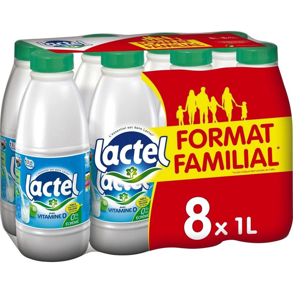 Laits de la marque Lactel [pack de 8]. Lait écrémé. EAN pack de 8: 3428273060021.