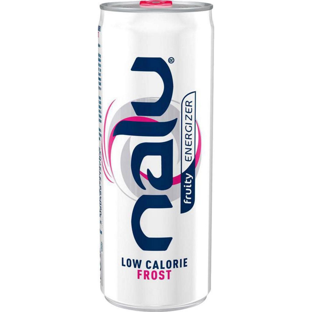 Nalu est une boisson énergissante à faible calories, idéale pour les sportifs, cette boisson fruitée est très connue en Belgique et au Luxembourg, sponsorisée par de nombreux sportifs est très agréable à boire. Eau gazéifiée, sucre, jus de fruits à base de concentré 4% (raisin blanc, pomme, fruit du dragon), arômes, acidifiants (acide citrique, citrate de sodium), thé blanc, conservateur (sorbate de potassium), caféine (0.03%), édulcorants (sucralose, acésulfame-K, aspartame), vitamines (B3, E, B12).