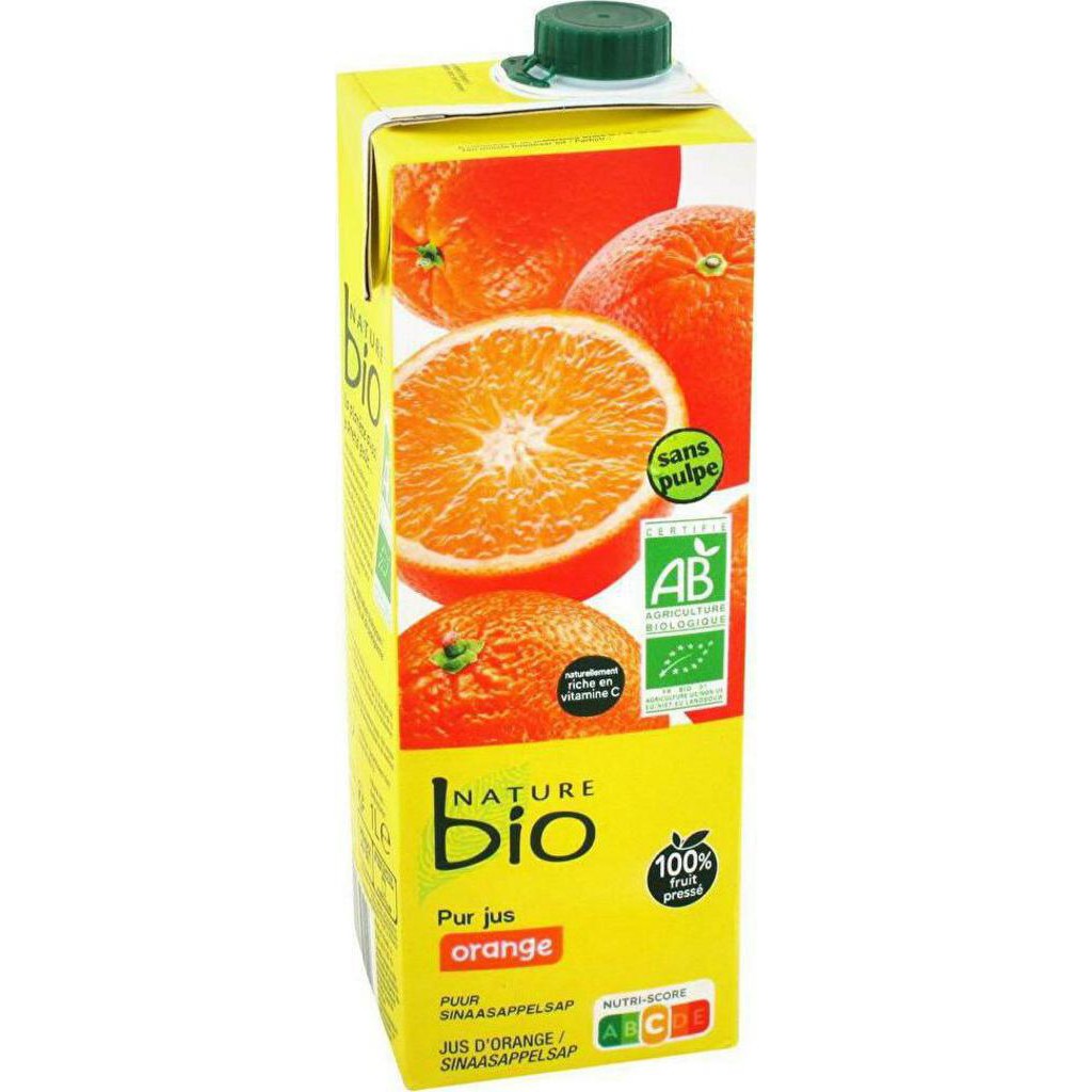 Jus de fruits de la marque Nature Bio. Jus d'orange BIO 1 L. EAN 3257985652510.