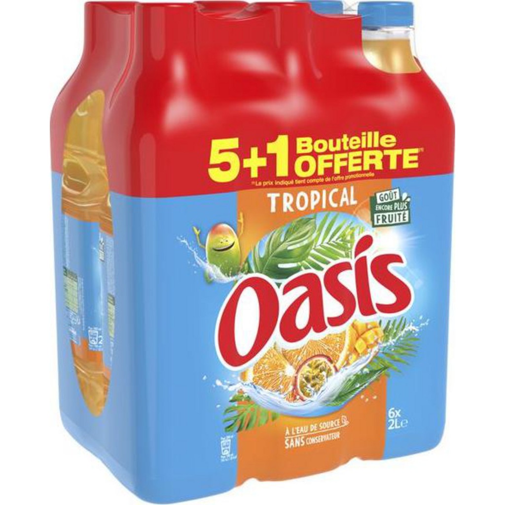Boissons fruitées de la marque Oasis [lot de 6]. Oasis Tropical. EAN lot de 6: 3701018003089. EAN produit unitaire: 3124480191182.